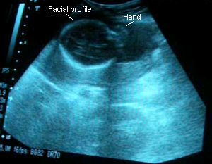 November 28, 2006: Blood pressure and urinalysis were great. Alaethia’s still in the head-down position. I’ve been feeling her little feet in my ribs and tugs around my belly, which the doctor says might be her pulling on the umbilical cord. She’s measuring at 30w3days according to her size although I’m 31 weeks 1 day, which Dr. C. says is fine but it makes me anxious since it might mean she’ll be here later than sooner :P. Although, I would like her to wait till 38 weeks at least! Dr. C. says she’s growing perfectly and confirmed for the 4th time that she’s a girl. From this sono, it looks like she’ll have Eenan’s round face and Jaylen’s lips…and probably my nose. I can’t wait to meet her!