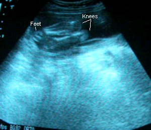 October 18, 2006: Went in for a follow-up appointment regarding the pressure I was feeling in my belly. Apparently Alaethia’s feet down, head up and so she’s either pressing down on my bladder and pushing her head up into my lungs, or both, hence the pressure. Her heartbeat was at 154 BPM and she’s growing well :).