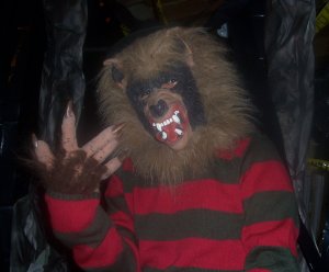 . John also dressed up for the occasion. He was half Freddy Crouger (sp?), half werewolf.